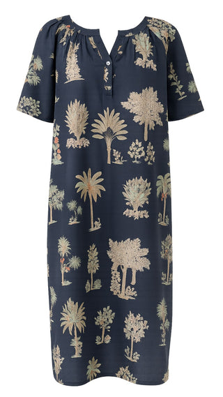 Bangalow Palm Short Sleeve Nightie - Navy Blue