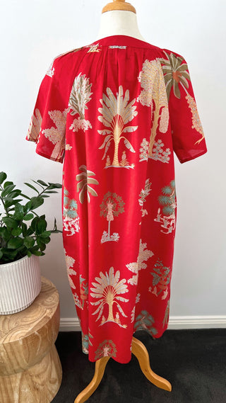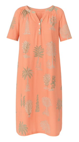 Bangalow Palm Short Sleeve Nightie - Coral Pink