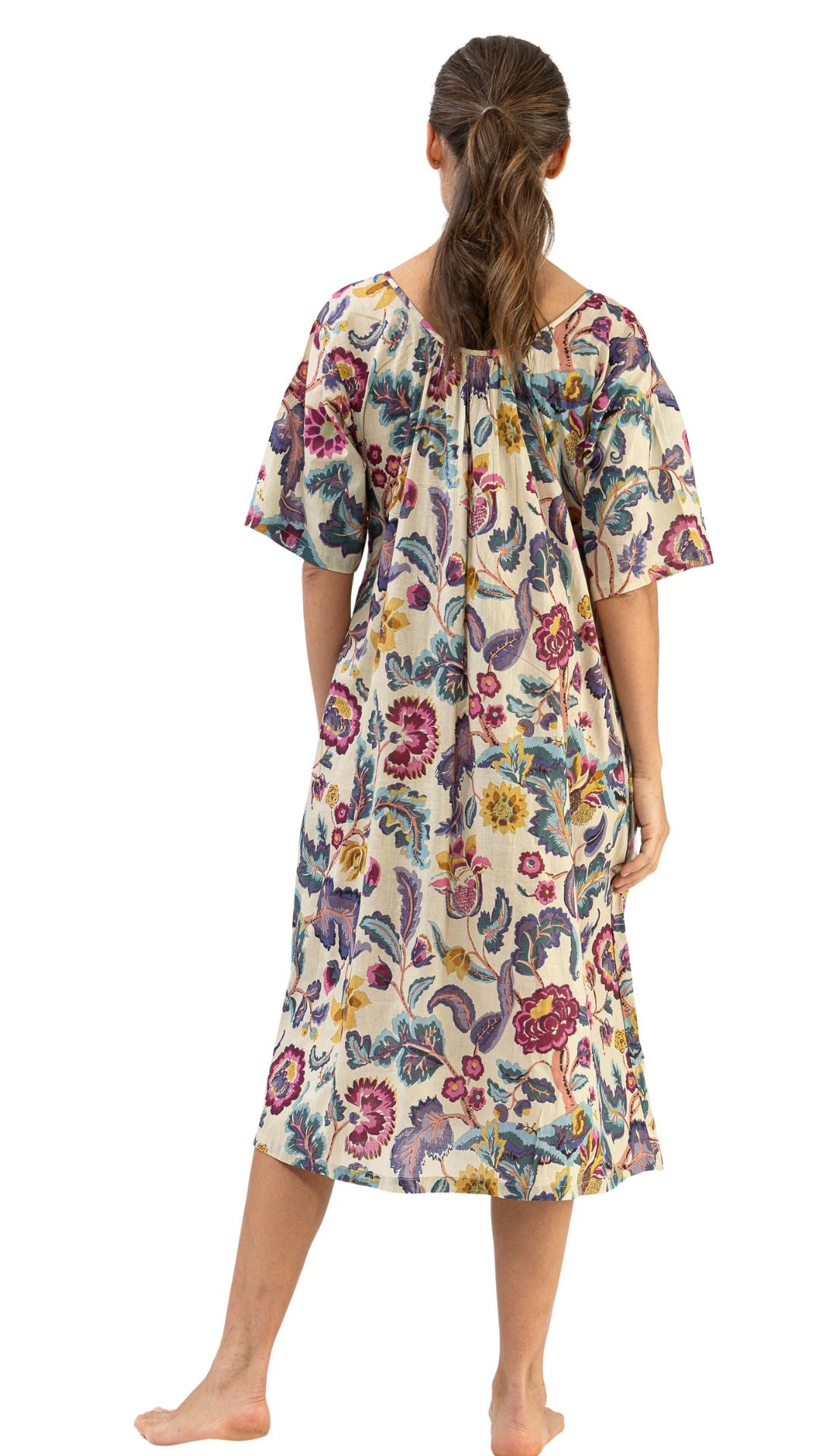 We only stock 100% pure cotton for every single piece at The Nightie Shop. Our products are proudly manufactured in India within a small family owned and run business. India is the worlds largest producer of cotton due to their climate and Northern dry lands. The variety of light weight cottons is vast and brilliant as are their pattern masters and fabric cutters all of whom are well taken care of, yes I travelled there myself.