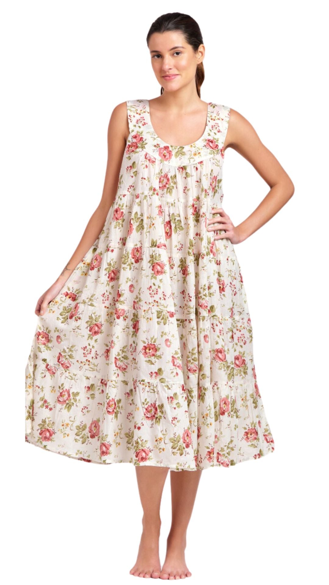 • Truly elegant English Rose tiered 100% light cotton nightgown/day dress