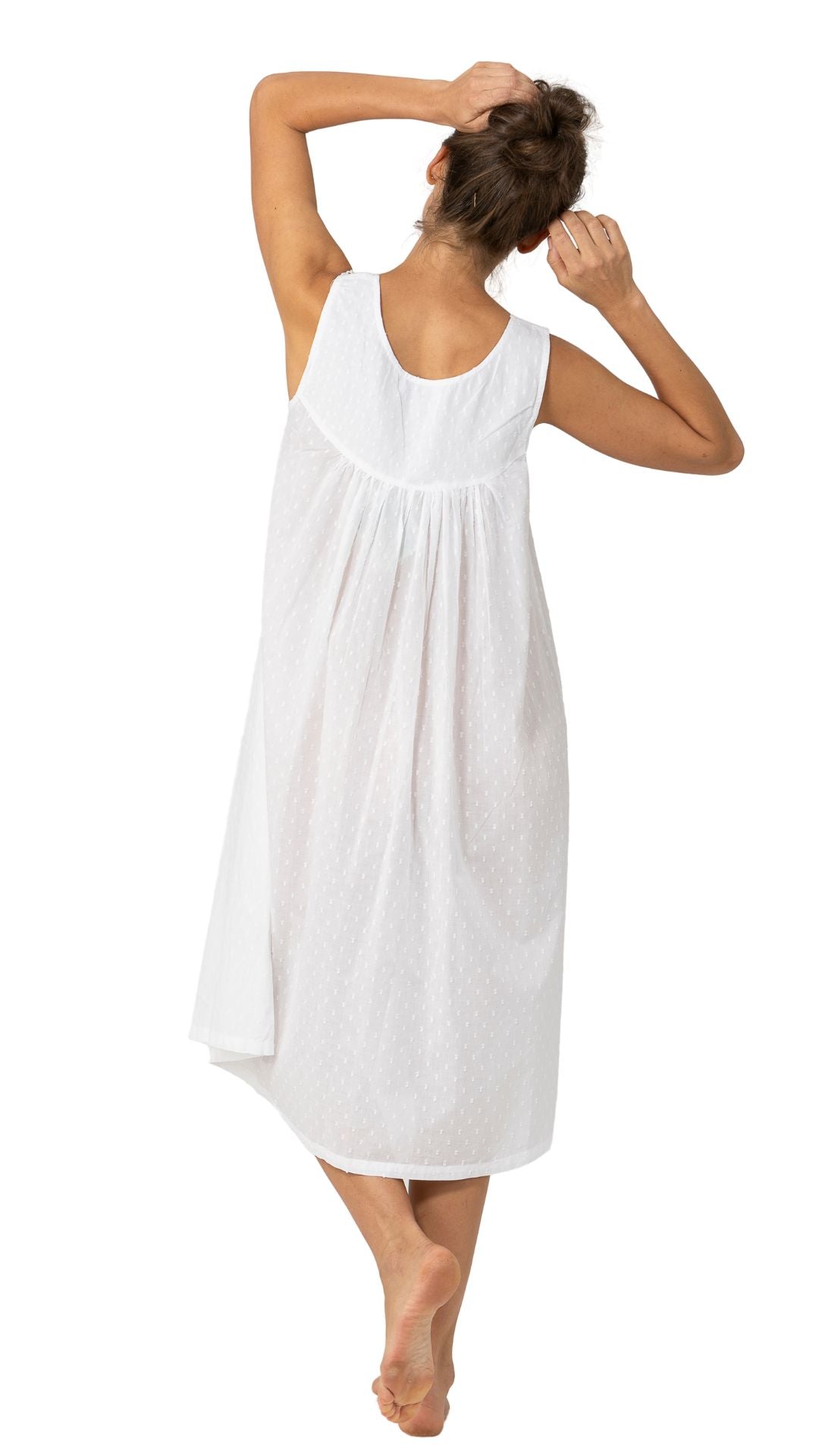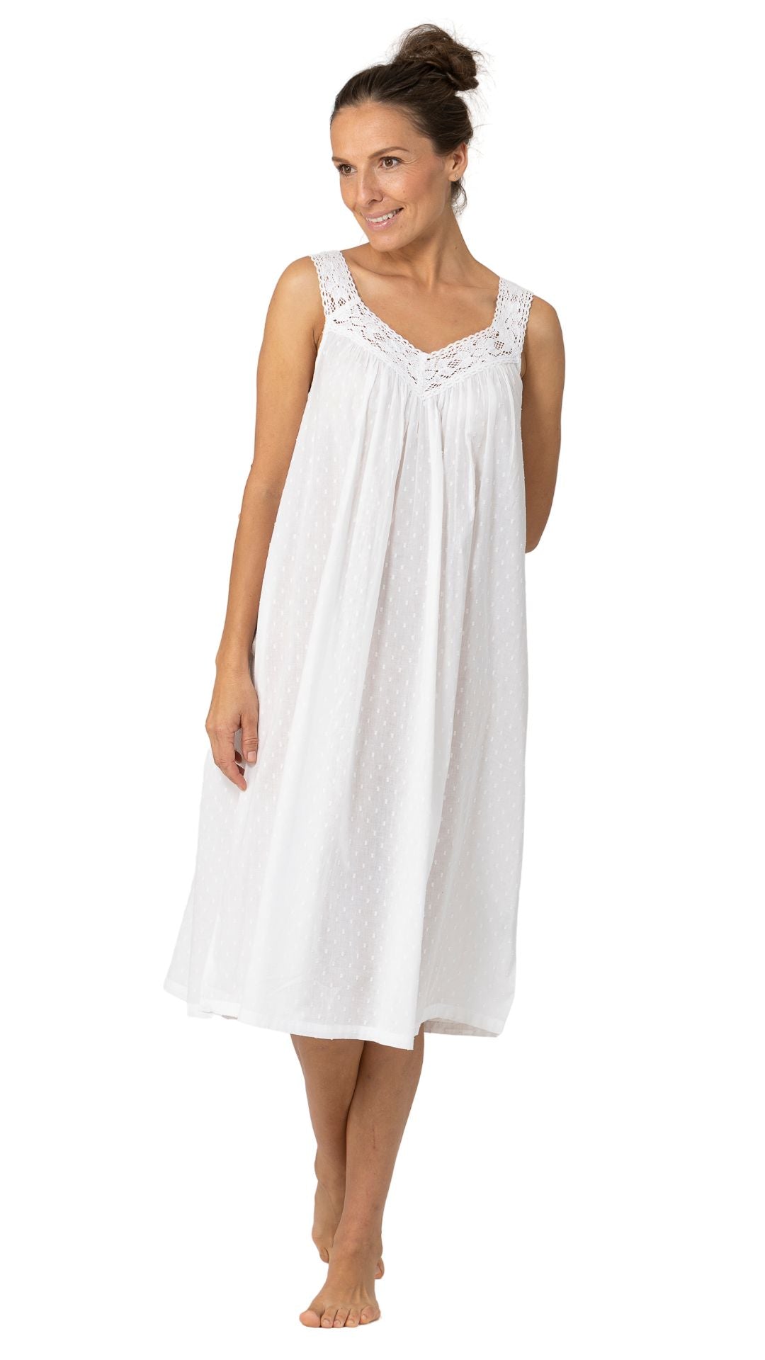 Elsa is a classy white nightgown with a cotton crocheted V neckline detail flattering for larger busts. There is also soft gathering for extra room across bust. The loose, flowing silhouette gently skims the body for ultimate freedom of movement and a light, breezy fee. This lightweight fabric is perfect for travel on holidays or in hospital stays. She can be easily washed in the sink/shower or on a cold machine wash.