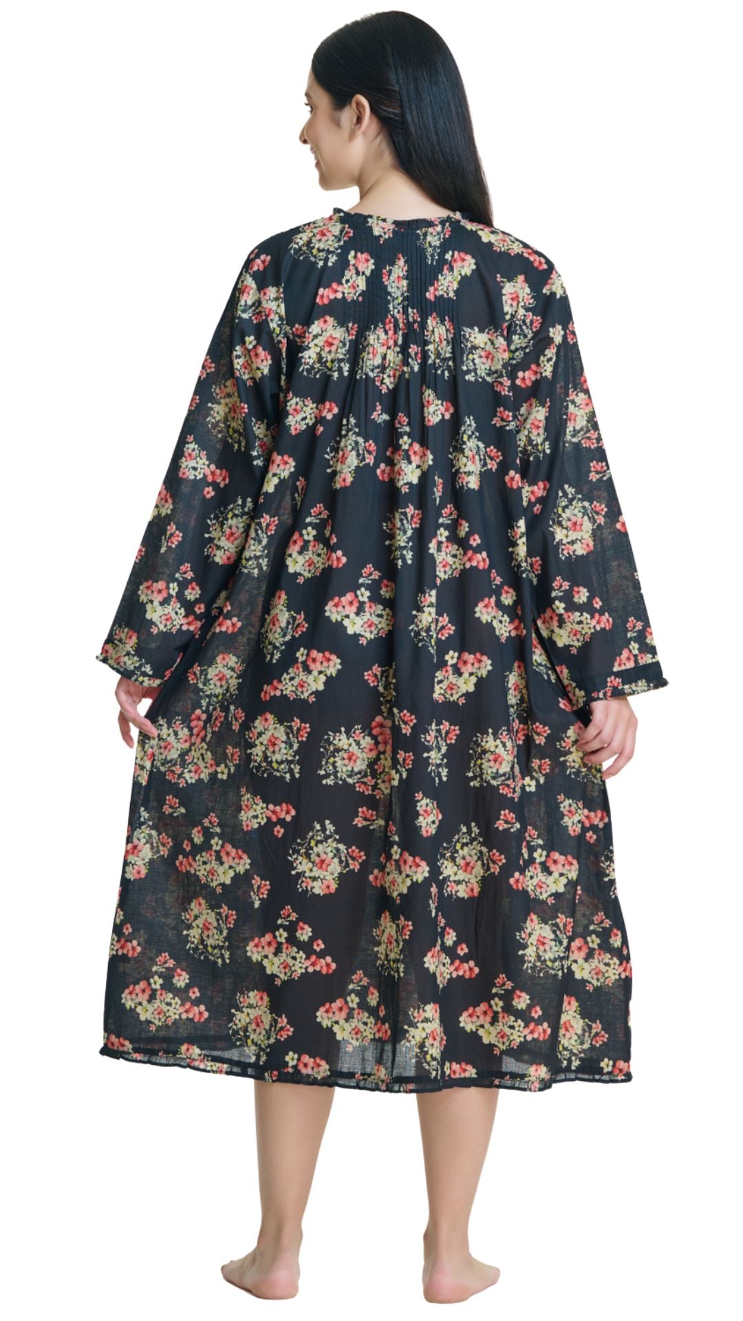 Dixie Black Floral Long Sleeve Cotton Nightie