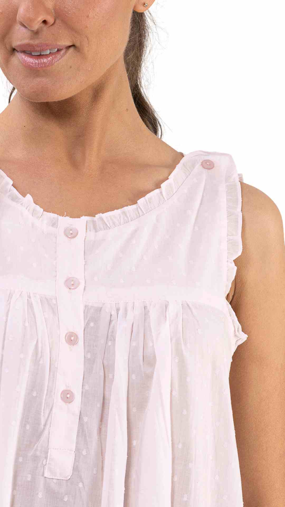 The Dorothy mimi is equipped with a feature button on the top of shoulders if you need to open for getting into your nightie with a frozen shoulder, breastfeeding, and access to a portacath for treatments and hospital stays after surgery. She is designed with a lovely frill around the neckline and hem to add some extra detailing. She is easy to wash out in the shower or on a quick machine wash. Her lightweight fabric is perfect for traveling or on the go patients.
