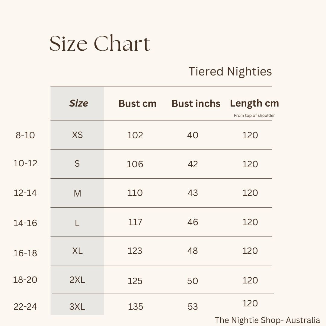 Secret garden is a maxi girl with ample fabric to give you ultimate coverage and comfort whilst still looking stylish. She has a loose and airy silhouette that is non restrictive and flattering on all body shapes. Her versatile design allows her to be worn on a day out to the beach or tucked in bed for a blissful nights sleep.